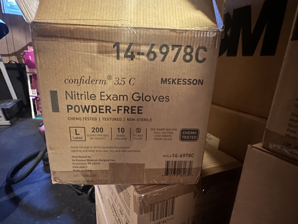 Up for sale is a case of McKesson Confiderm 3.5C Powder Free Nitrile Exam Gloves, Large 10 boxes (2000 Total) New. Unopened box. Chemo Tested. Textured. Non-Sterile. Buy with confidence, Ships fast