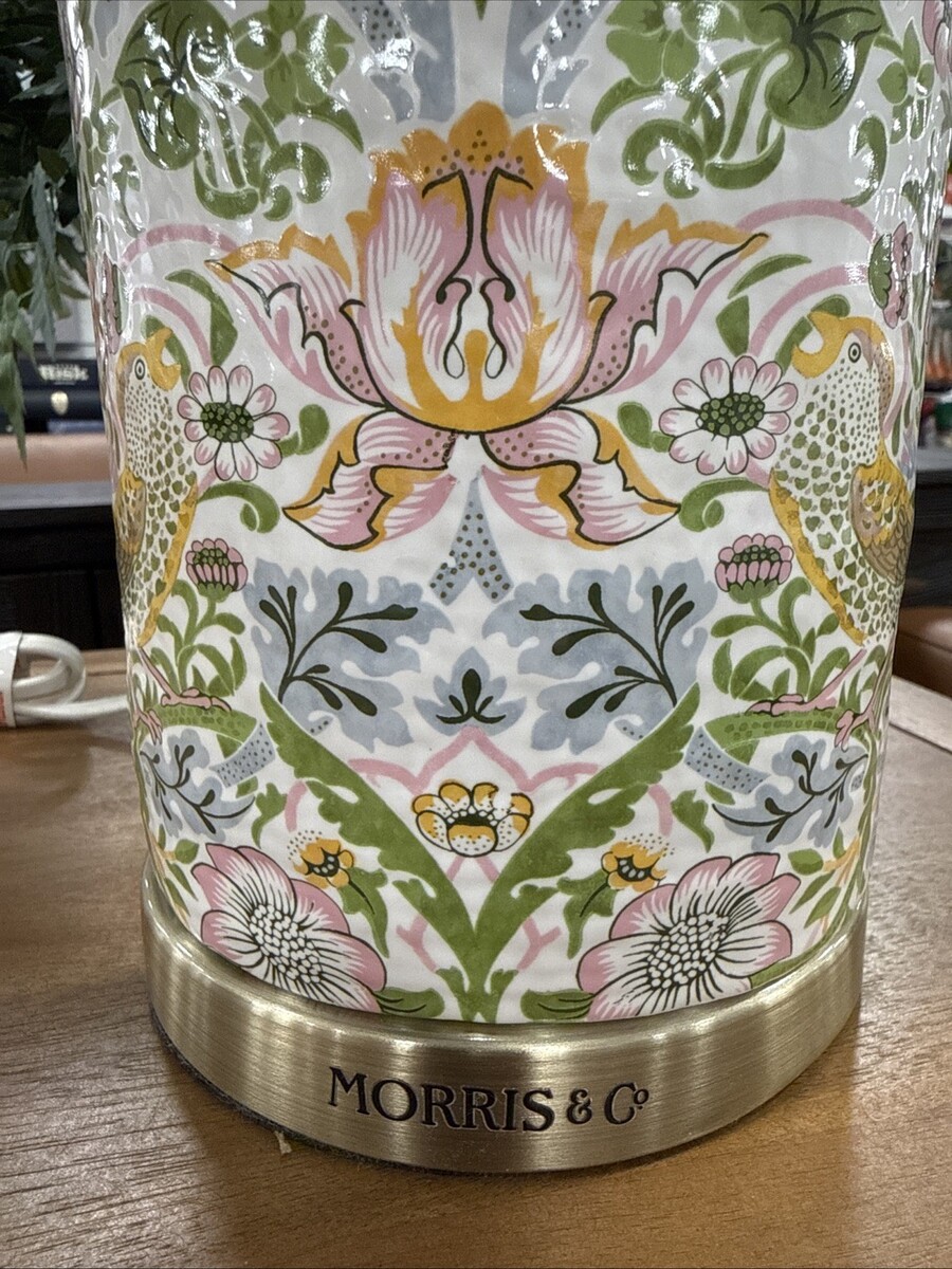 William & Co Strawberry Thief Birds Floral Multi Colors Table Lamp 23” Tall New~