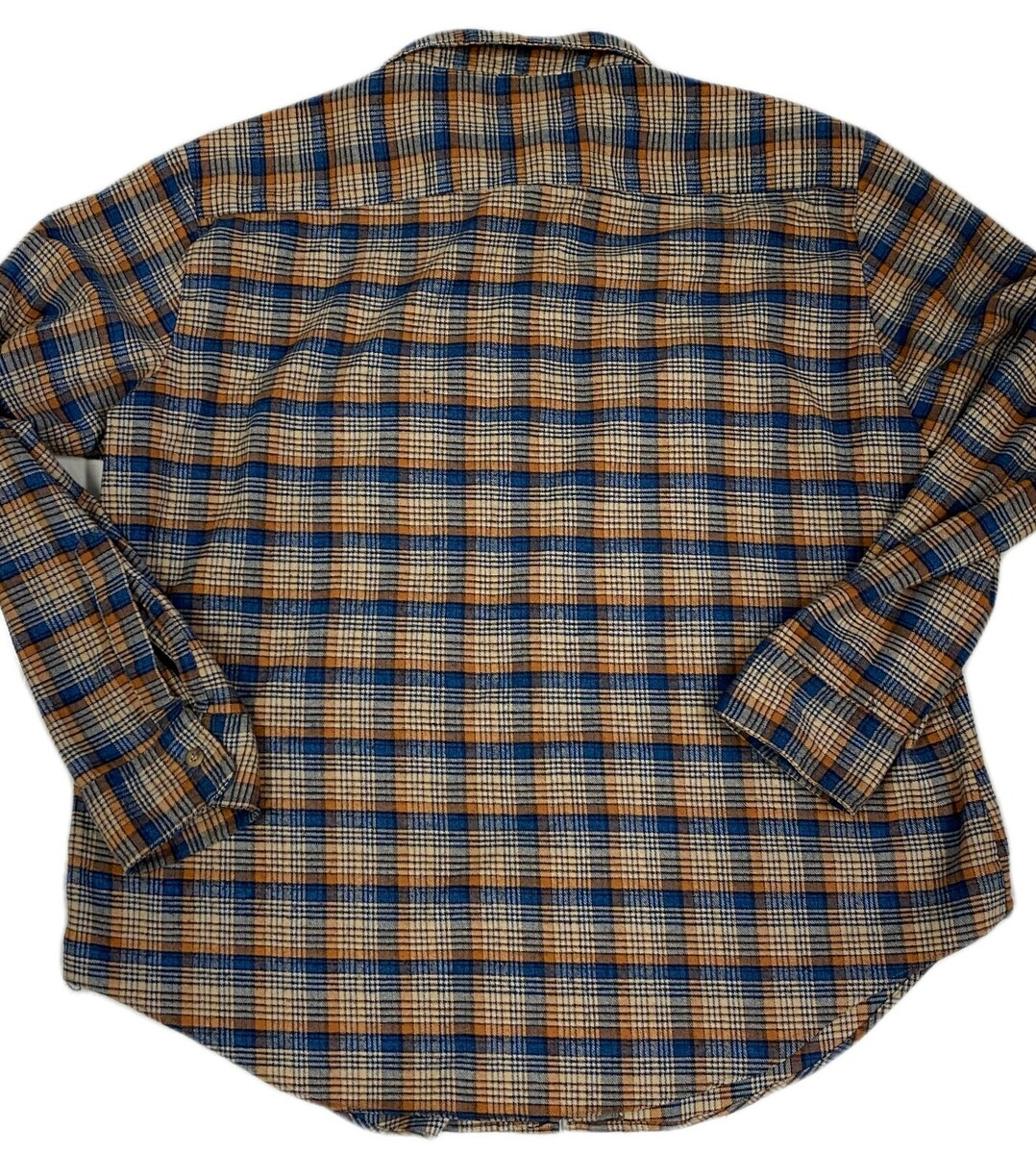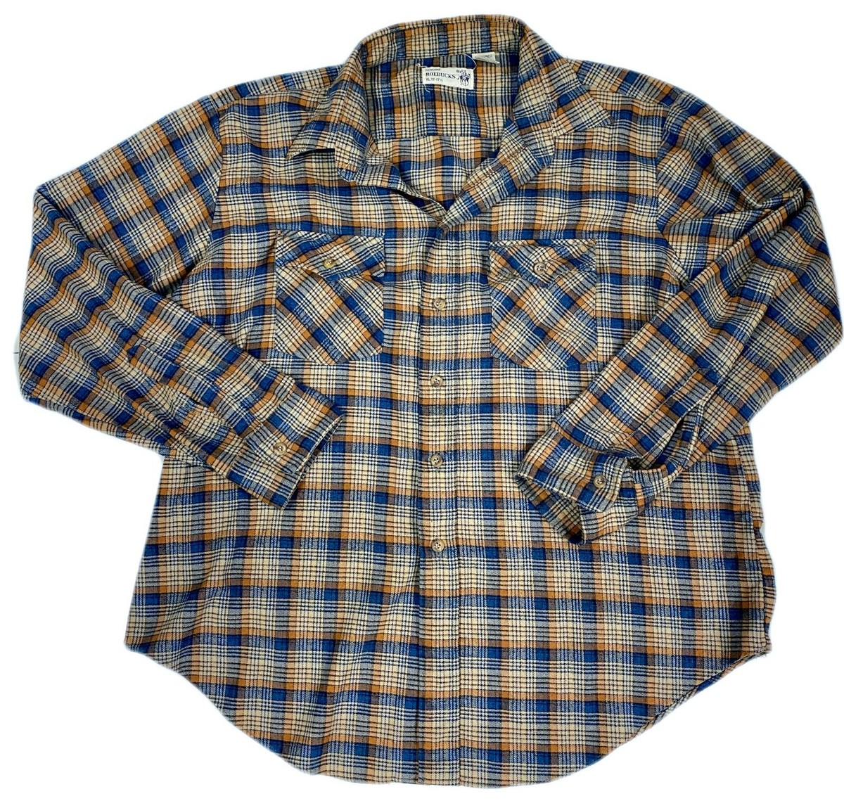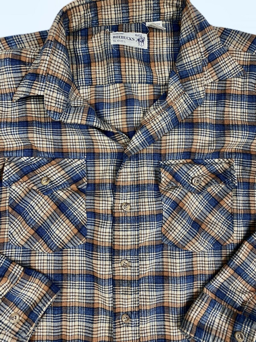 Provenance Note: Roebucks was a Sears in-house brand, launched in the 1940s, specializing in denim, workwear, and casual staples. By the 1970s?80s, many garments (including this shirt) were manufactured in Hong Kong, known then for high-quality cotton-poly blends. These flannels were affordable, durable, and widely popular ? today they?re collected as authentic retro workwear basics.