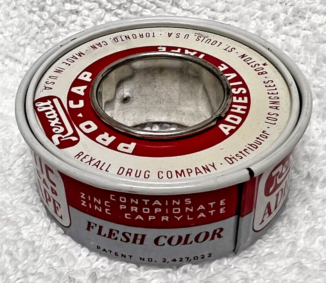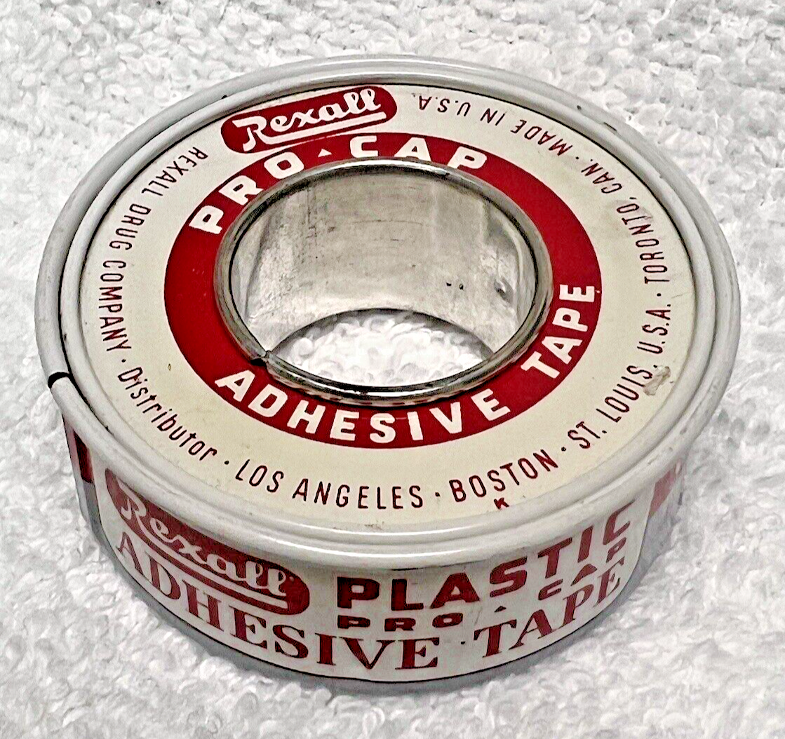 Vintage Rexall Plastic Pro-Cap Adhesive Plaster Tape Tin 2 1/4 x 7/8 Inches