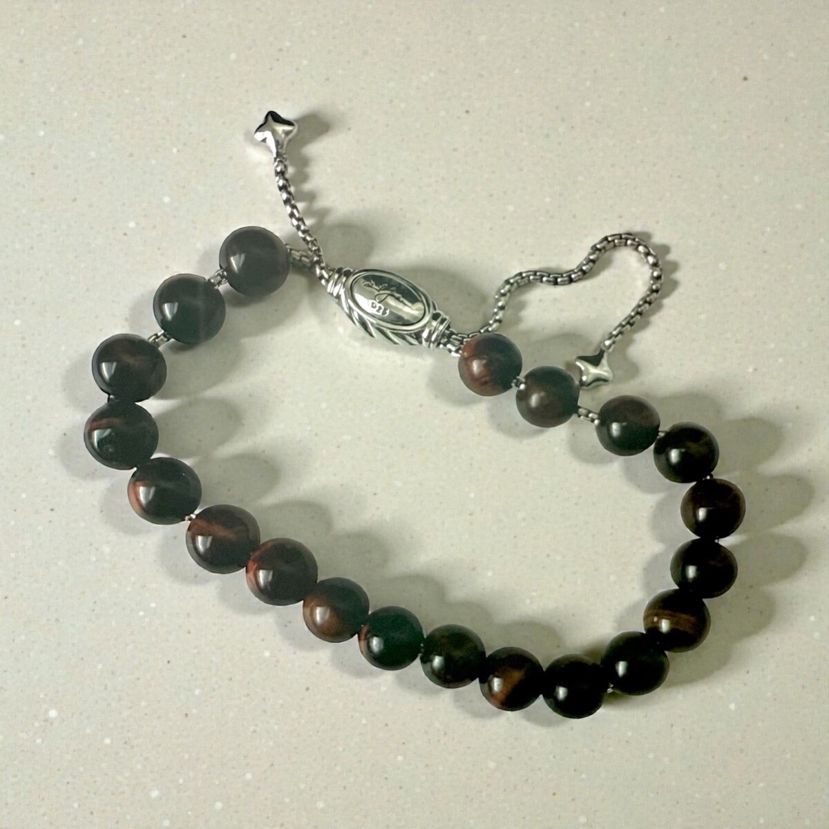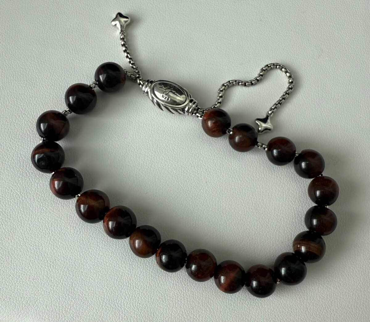 .925 Sterling Silver Spiritual Bead's Red Tiger Eye Ball Bracelet David Yurman