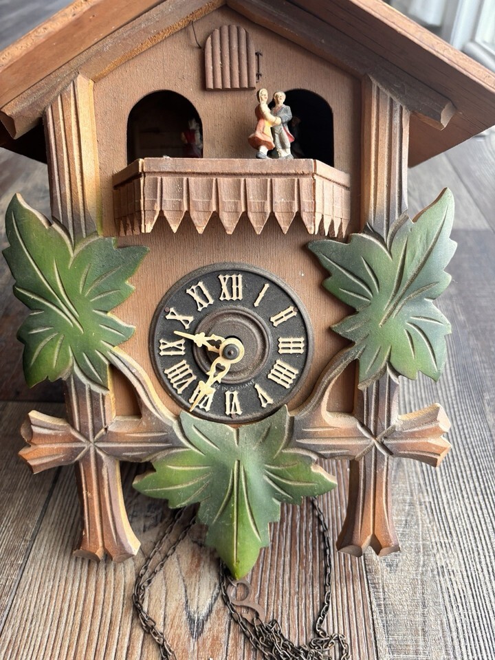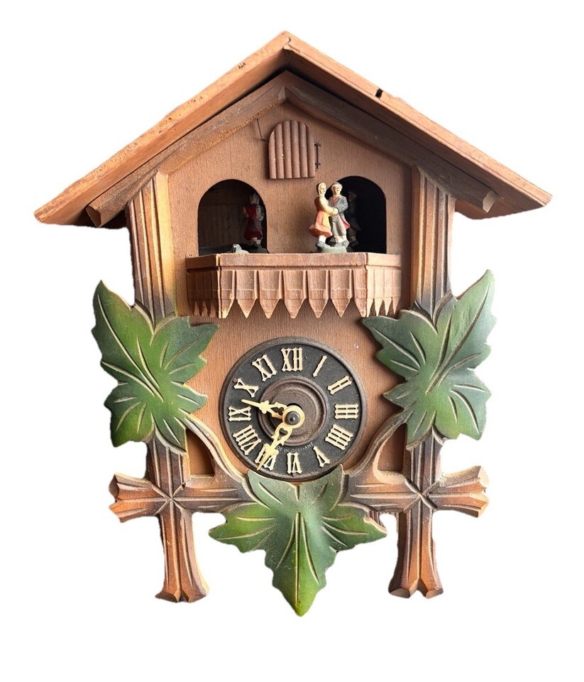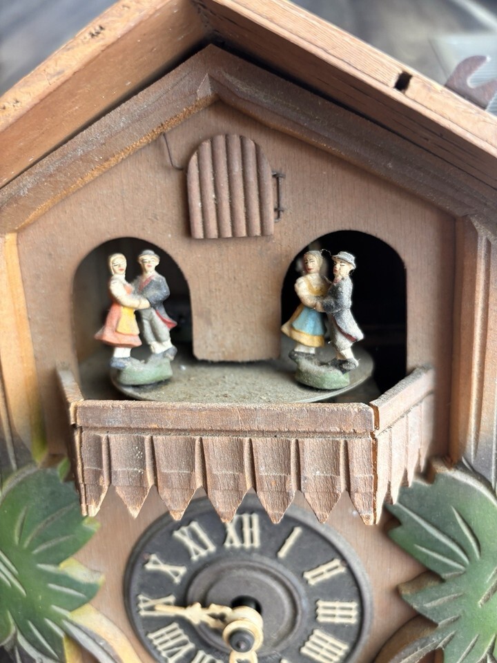Vintage German Chalet Cuckoo Clock W/ Animated Dancers for Parts Repair