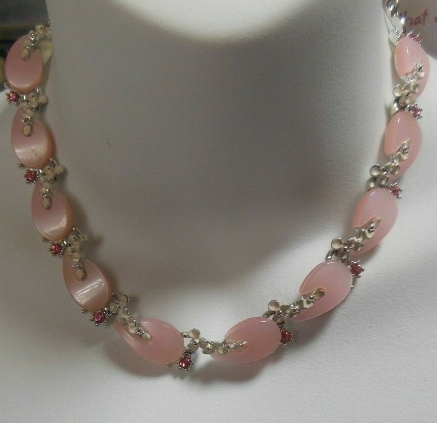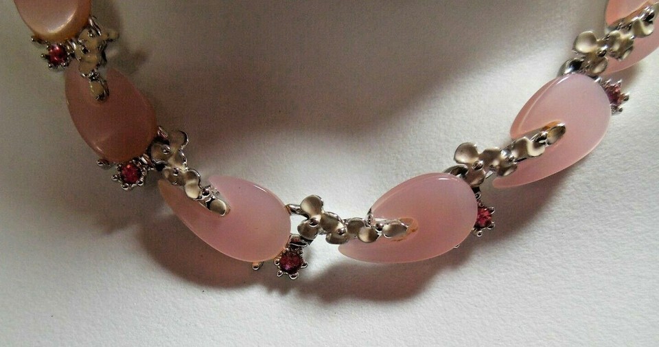 Vintage Pink Lucite Pink Rhinestone Enamel Necklace