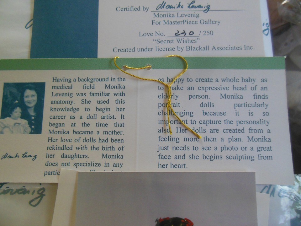 This limited edition Masterpiece Gallery doll is a rare find, with only 250 produced. Designed by German Doll Artist Monika Levenig.