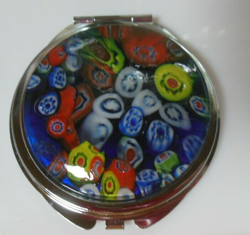 Vintage Silver-tone Murano Millefiori Glass 2-Sided Mirrored Compact