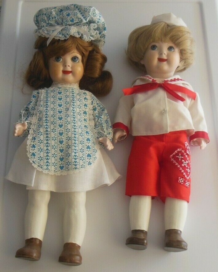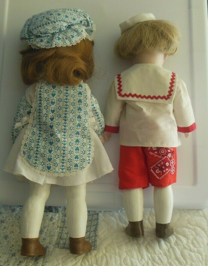 Vintage Signed Bisque/Porcelain Googly Eye Dolls Girl & Boy Painted Legs, Shoes
