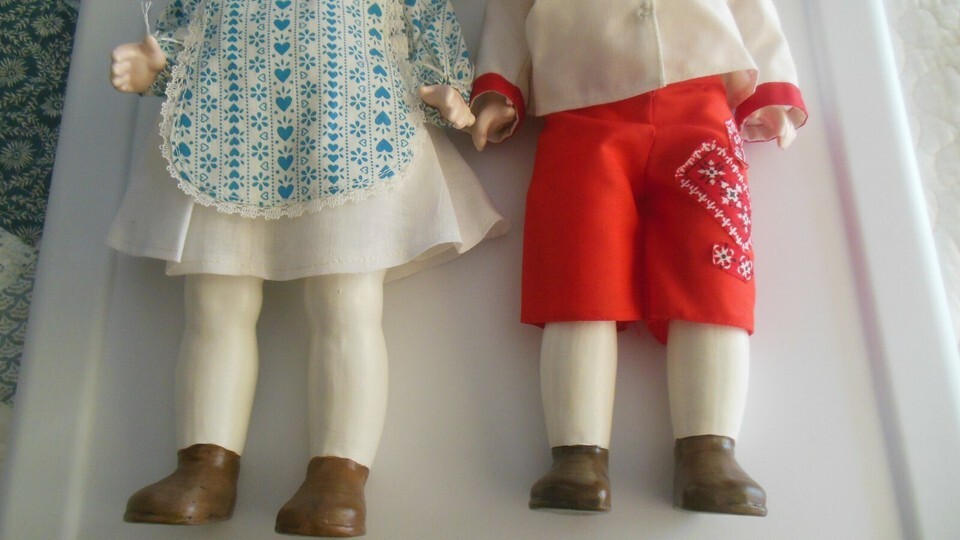 Vintage Signed Bisque/Porcelain Googly Eye Dolls Girl Boy Painted Legs, Shoes