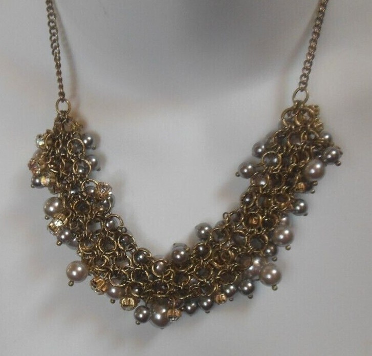 Signed LOFT Faux Pearl & Clear Rhinestone Cluster Necklace 19.5" -Adjustable