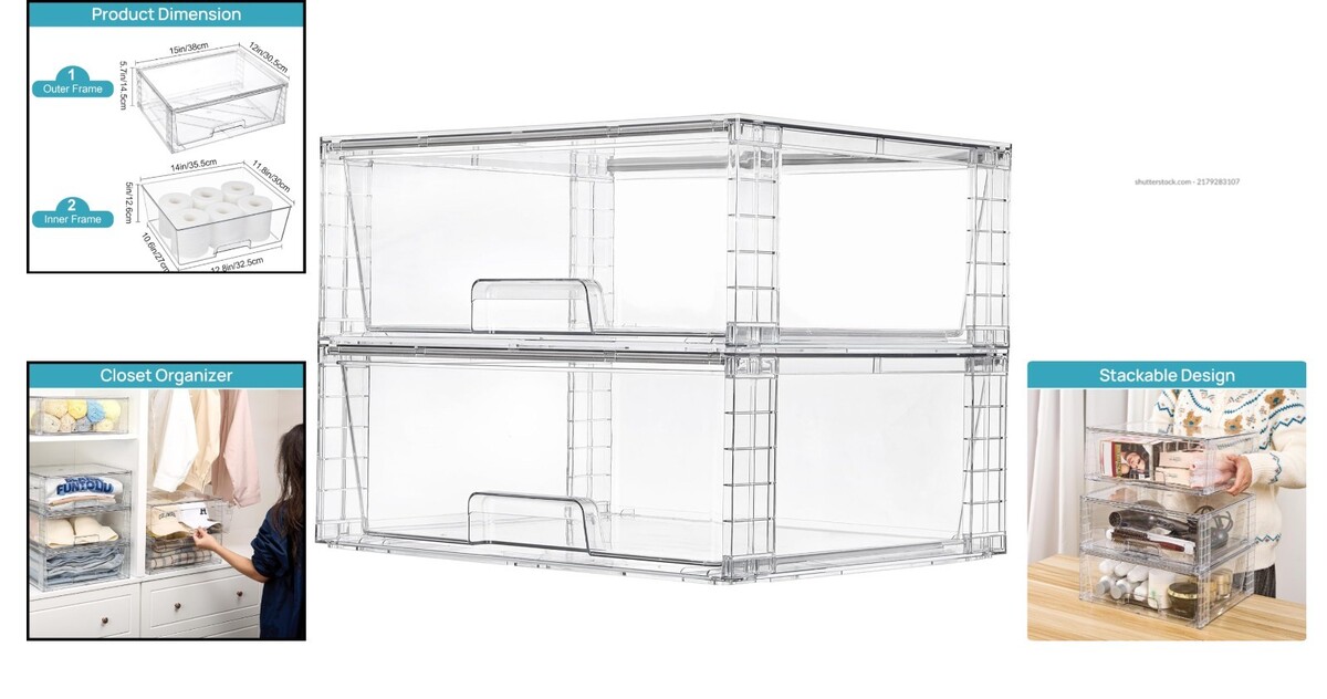 Elegant 2 Pack Clear Acrylic Stackable Storage Drawers for Smart Organization