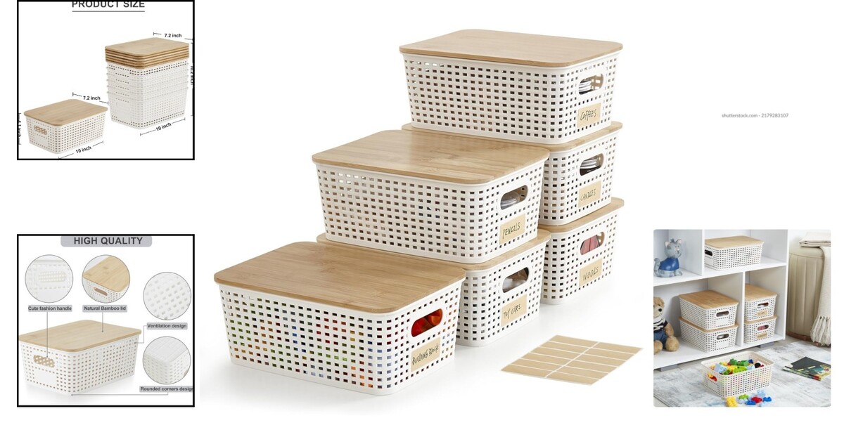 Versatile Stackable Plastic Bins with Bamboo and 49 similar items