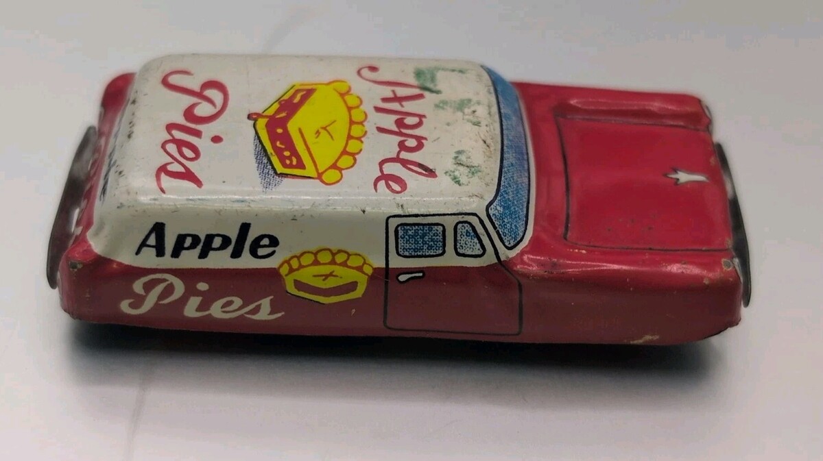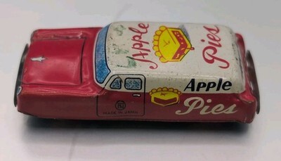 Japanese Tin Litho Toy Apple Pies Delivery Friction Car Nakamura Japan 1950s