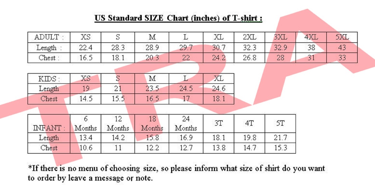 *If there is no menu of choosing size, so please inform what size of shirt do you want to order by leave a message of note.