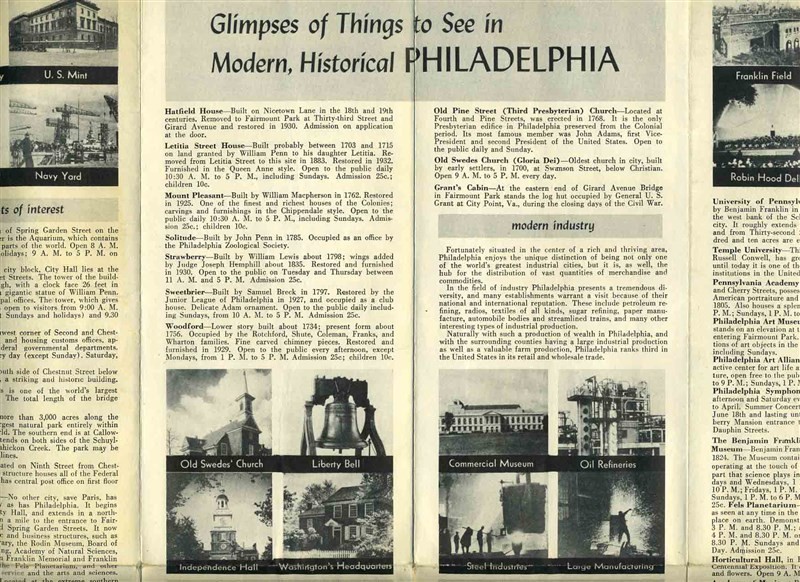 Historic Philadelphia Pennsylvania Brochures 1940's History Points of Interest