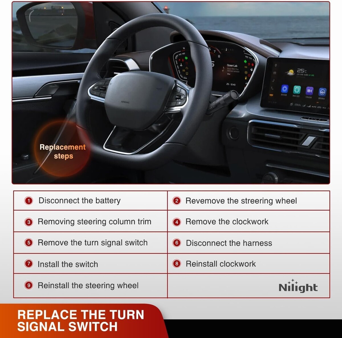 OEM Fit: This multifunction switch is designed to match the function and form of the original switch, exactly OEM design to replace your defective blinker switch. Provides the function of Turn Signal, Cruise control, Windshield wipers, Windshield Washer, Headlight high low beam, and hazard warning. This wiper switch with 12 pins+12 pins.Just need to remove your original Turn Signal switch Install. Plug and play.