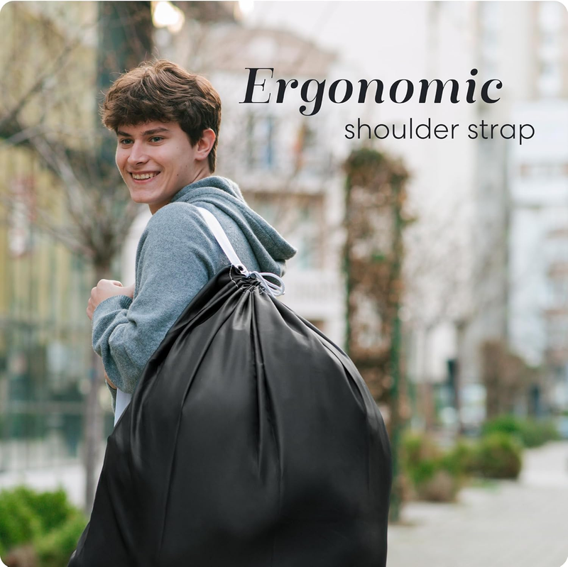 Bag Shoulder Strap Extra Large - Drawstring Locking Closure, Durable Material, Heavy Duty Stitching, Hands Free Carrying - Perfect College Dorm (Black, 30" X 40")