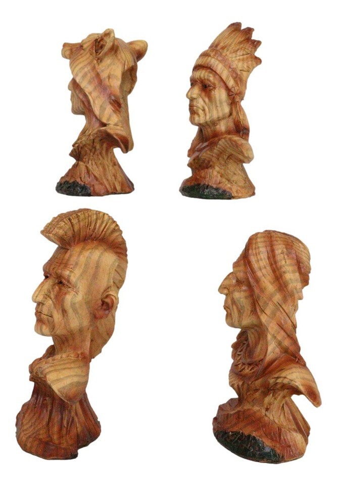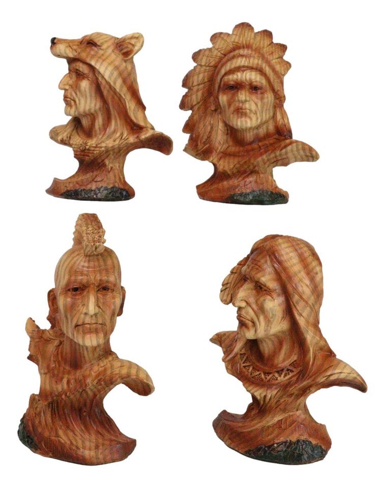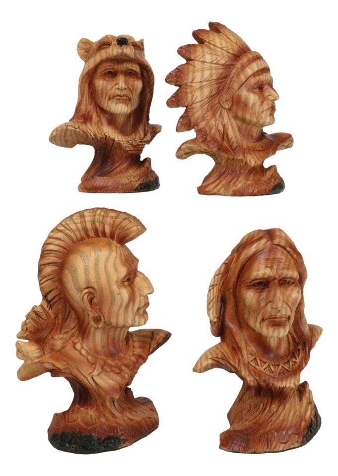 Set of 4 Native American Sioux Indian Tribal Warrior Chief Faux Wood Figurines