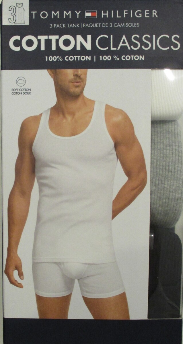 3 TOMMY HILFIGER RIBBED TANK TOP BLACK GRAY WHITE S M L XL XXL COTTON T-SHIRTS