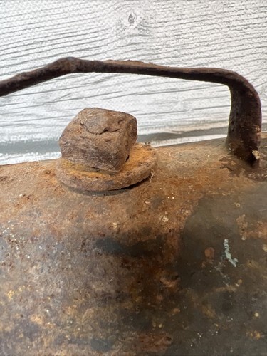 MEASURES APPROX 8? HIGH..6 1/2" ACROSS BOTTOM .SHOWS A LOT OF USAGE/ HANDLING / AGE WEAR..HAS SCRATCHES/DENTS/RUST/AGE DISCOLORATION.....PLEASE VIEW PHOTOS FOR CONDITION.***