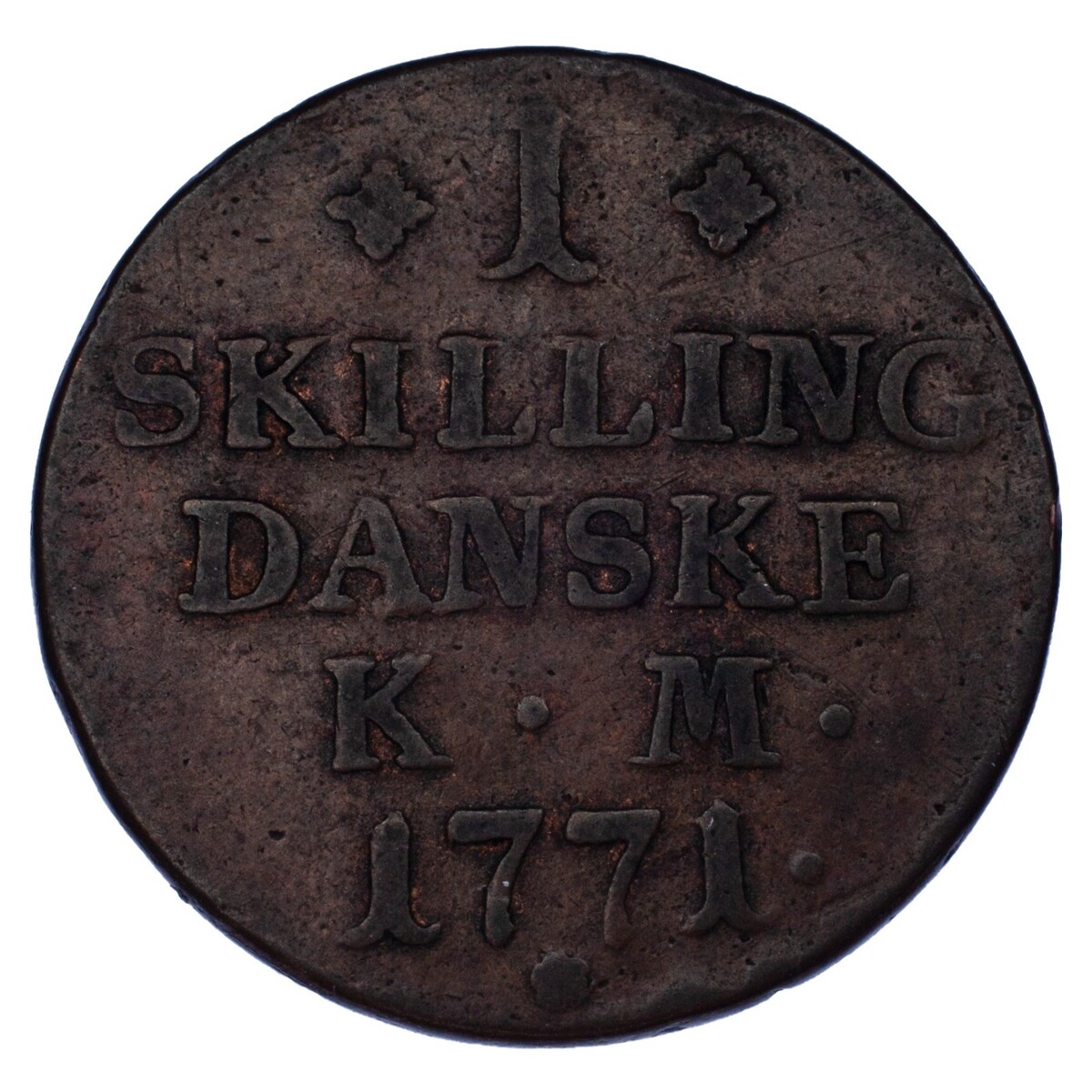 1771 Denmark 1 Skilling Coin In VF, KM# 616.1