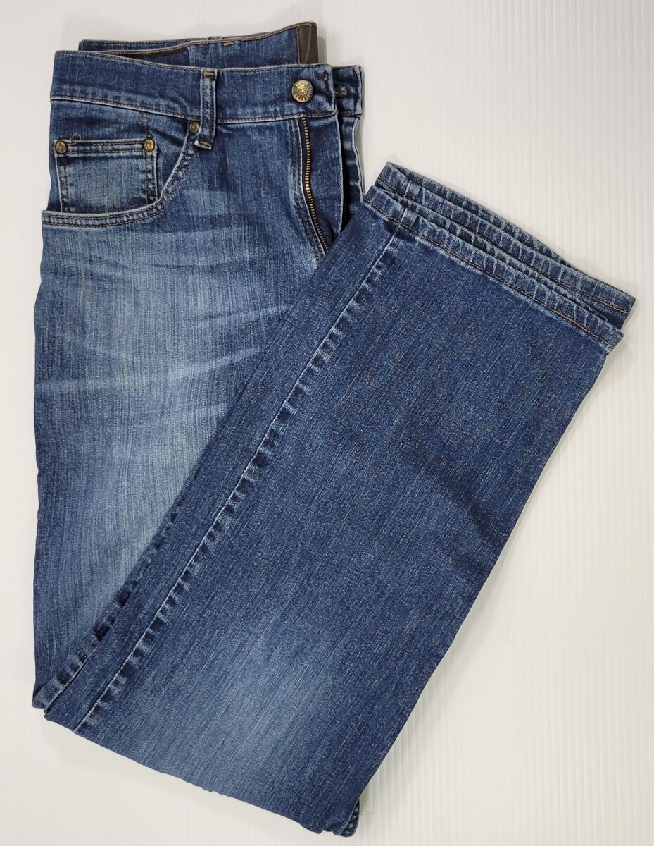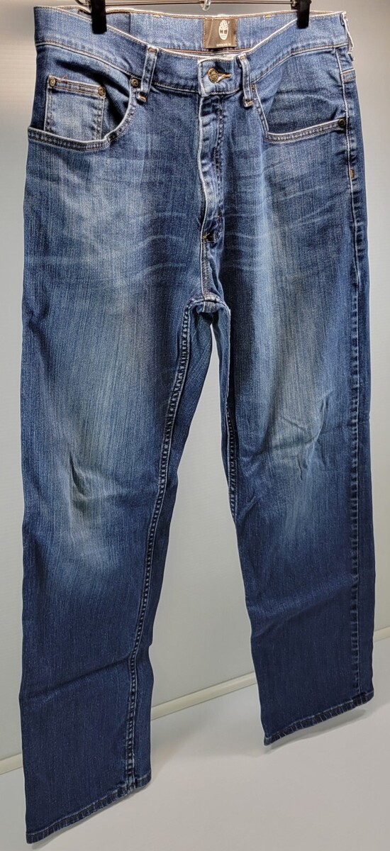D) Timberland Straight Fit Men Dark Wash Blue Denim Jeans Size 34 x 32