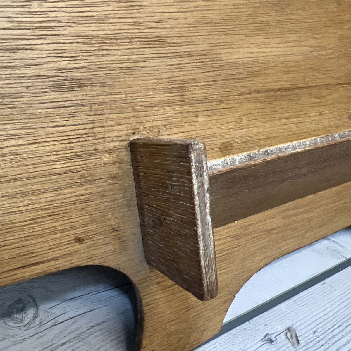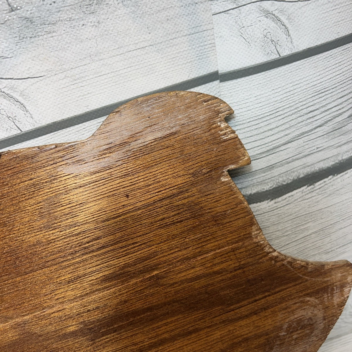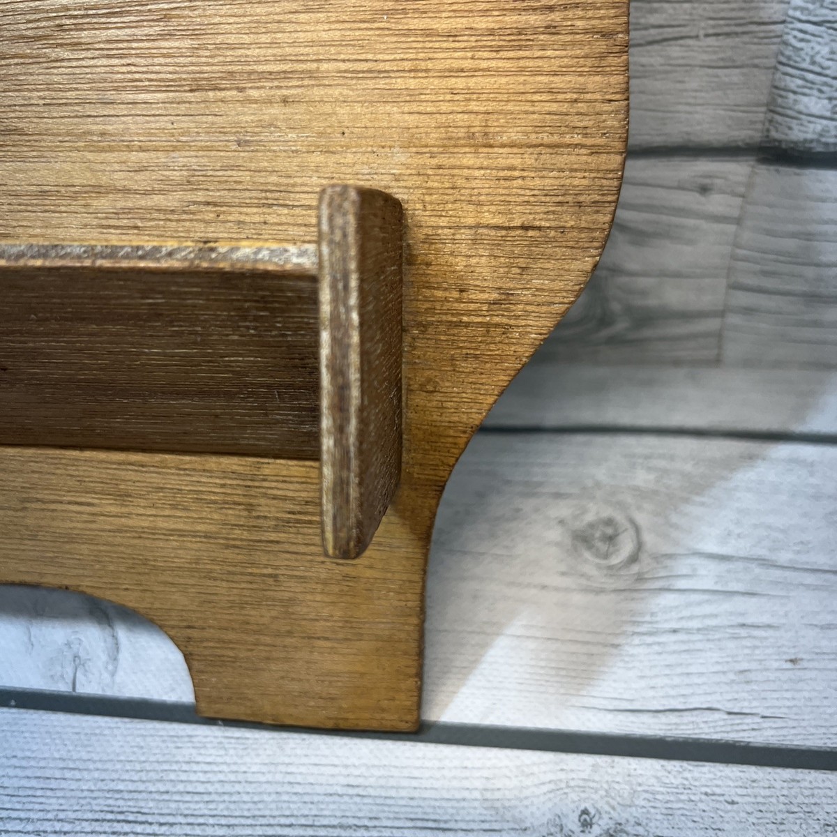 E11-Note: this is a thin wood item. It could be displayed 2 ways. The back has a small wood holder for maybe recipes? Very unique and handmade