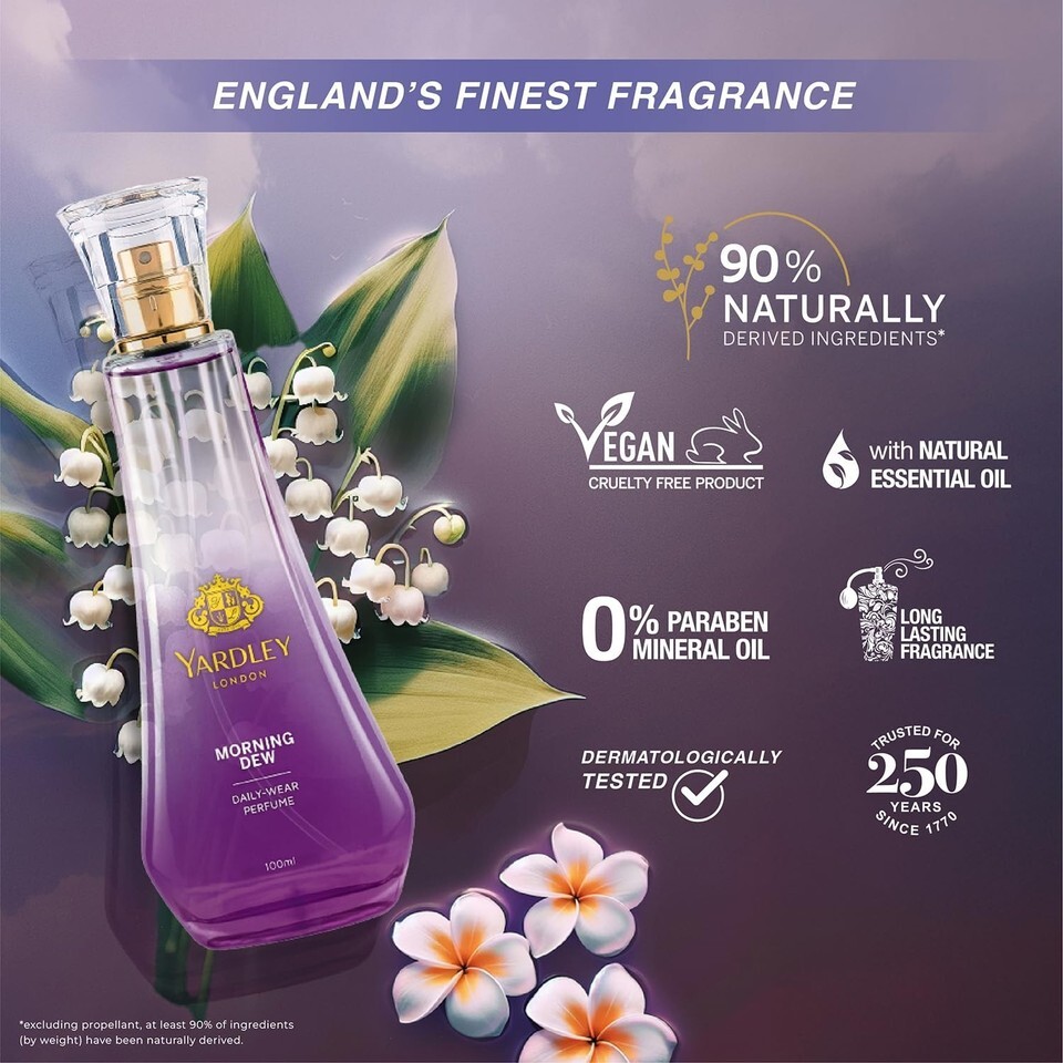 Fresh Floral Burst: Yardley Morning Dew daily wear perfume is crafted with choice ingredients; experience freshness for daily wear and special
