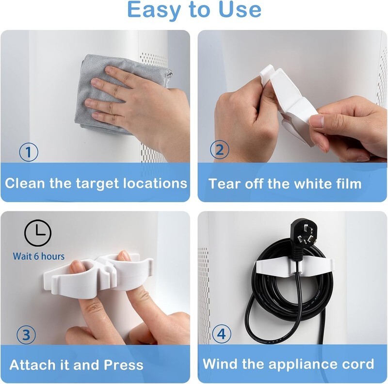 Easy Installation: The cord holder is an essential kitchen aid that can be easily attached to a variety of surfaces. In order to fix the cord keeper for appliances more firmly, please clean the surface of the appliance before attaching the appliance cord organizer and allow at least 6 hours for the adhesive to set before wrapping the wires, this will make cable holder firmer and last longer.
