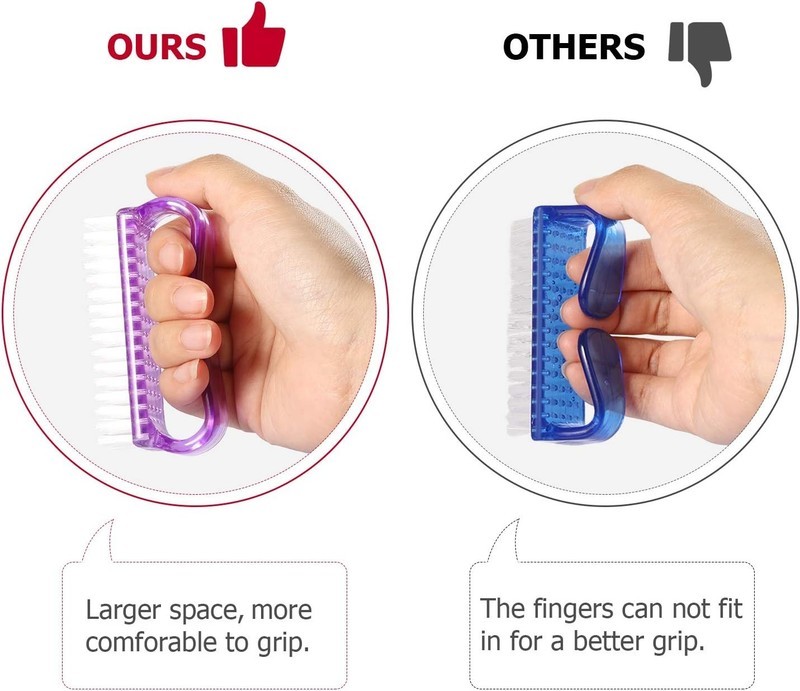 ?New Design?: We have made some improvements. The Handle fingernail brushes have a larger gripping space, much easier to hold and convenient to use.