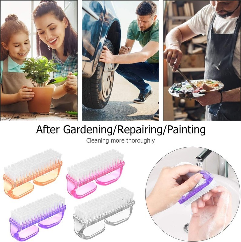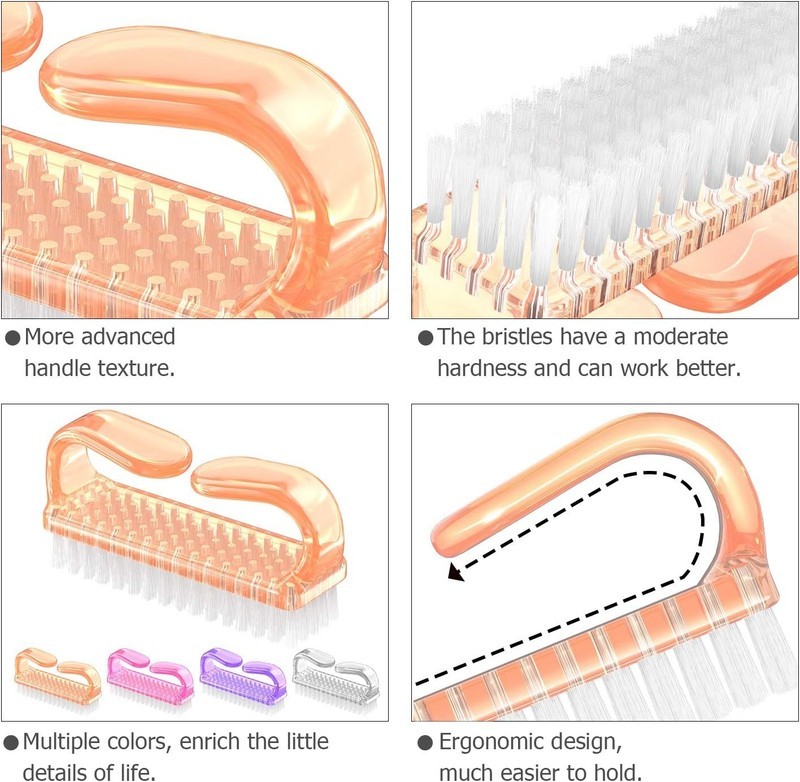 ?High Quality Material?: These nail brushes' handles are made of sturdy plastic which are not easy to bent. The bristles are made of flexible plastic, not too hard and not too soft which won't scratch your skin. Sturdy for long-term to use.