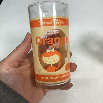 Vintage Lot Of 3 - Drink-Up Cherry And Orange Drinking Glasses. These are in good condition and measure 4 5/8?Hx2.25?D