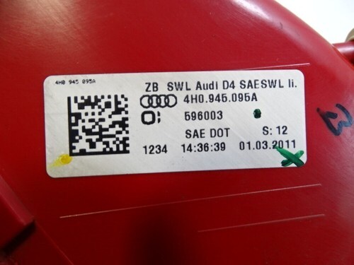 11 Audi A8 D4 Light Lamp, Taillight Brake Outer Left Rear 4H0945095A