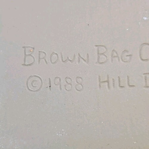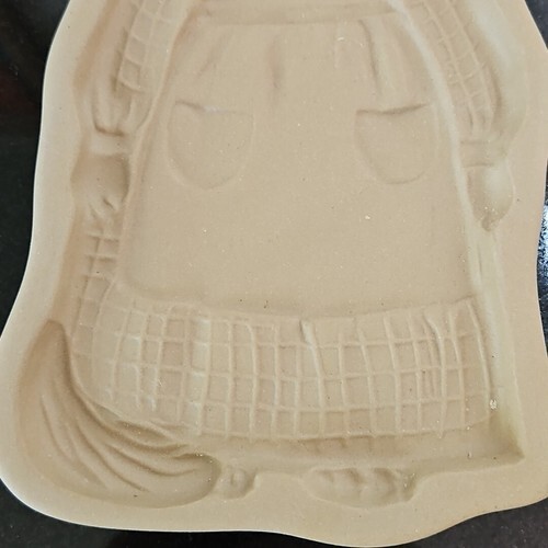 Brown Bag Cookie Art Mold Cat Girl Wearing Apron Giant Stamp Ceramic Vtg 1992
