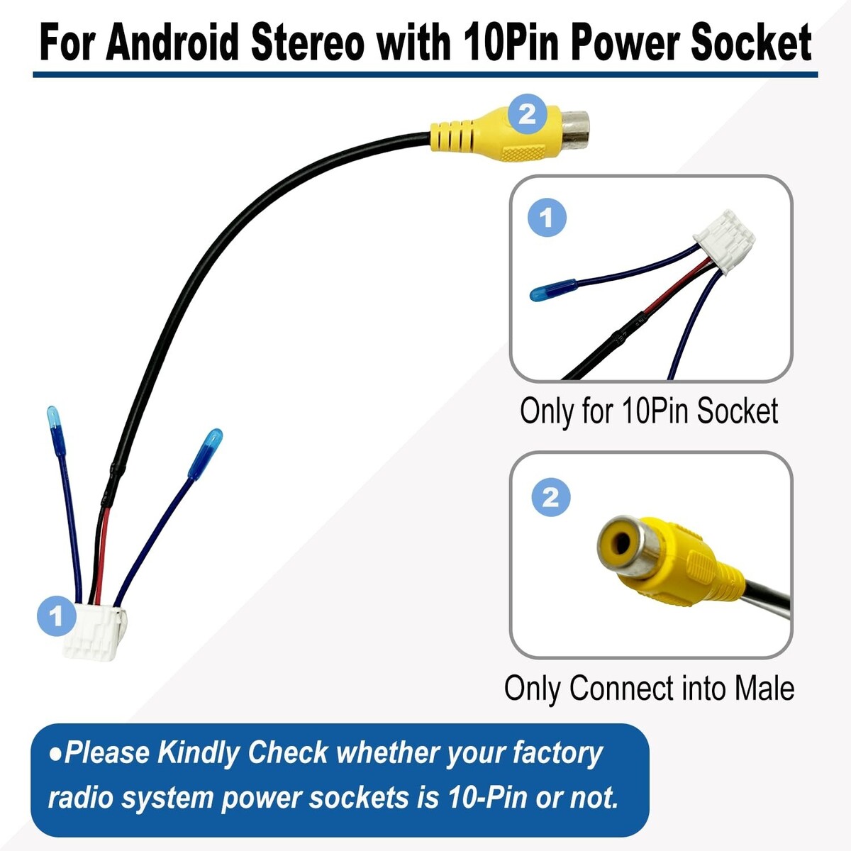 Compatibility with Android car stereos with 10-Pin socket; Available for 7/8/9/9;7/10;1/12 inch Android radio;