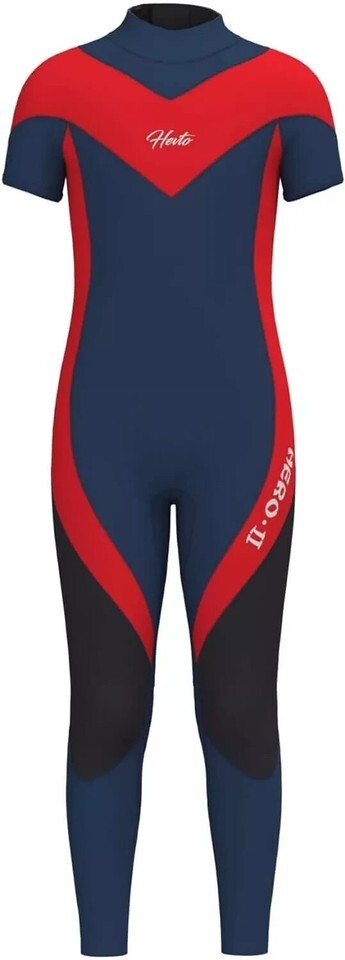Get ready for some heroic adventures with the HEVTO Hero II Kids Wetsuit in size 10. This full wetsuit is made with 3/2mm neoprene material, ensuring maximum comfort and warmth for your little one. The wetsuit features short sleeves, perfect for all kinds of water sports, and comes in a bold navy, red, and black color combination.