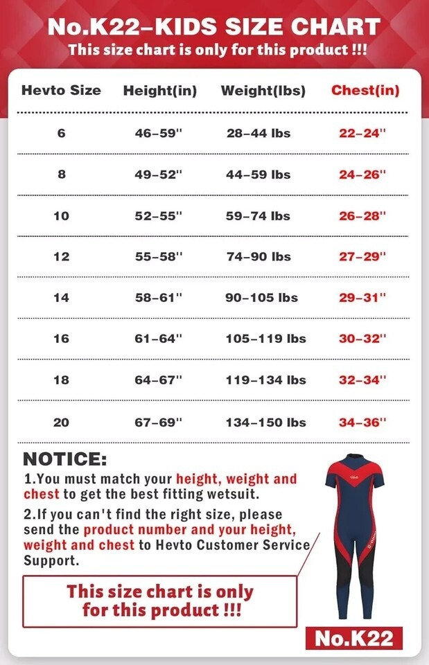 HEVTO Hero II Kids Wetsuit Size 10 (K22-Red) and similar items