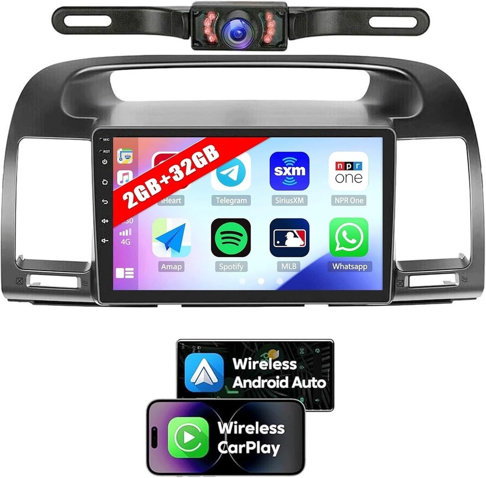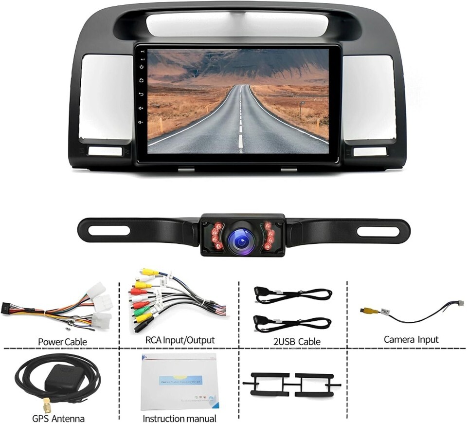 PREFECT FIT - Our 9 inch car radio stereo is specifically designed for Toyota Camry 2000-2006 with carplay android auto,ensuring a fit and seamless integration with your vehicle. BUILT IN CARPLAY AND ANDROID AUTO - This Alikali double din car stereo is compatible with Carplay and android auto, allowing superior voice assist control and making it easier to access your phone functions including music, GPS navigation, calls, notification, messages and much more , while keeping your hands free for totally safe driving maneuvers! GPS NAVIGATION WIFI AND BLUETOOTH FUNCTION - The car stereo has built-in Wi-Fi and GPS, supports online maps such as google maps, waze and here maps, shares hotspots through your phone, and can also download offline maps in the app store. Built-in bluetooth supports hands-free answering and making calls and smart music playback, these features make your driving easier and more enjoyable. POWERFUL STEREO RADIO CONFIGURATION - Tempered glass mirror auto radio player has the latest Android 13.0 operating system 2GB (RAM)+32GB (ROM), powerful core processor, ensures smooth operation and faster response.The 9 inch touch screen stereo has a larger and clearer screen, giving you a wonderful visual experience. 100% CUSTOMER SERVICE - Before installation, please be sure to check the detailed wiring diagram in the picture and use the wiring harness that comes with our radio (some cars may need to replace the wiring harness for installation). If you have any questions, please feel free to contact us and we will help you solve the problem.