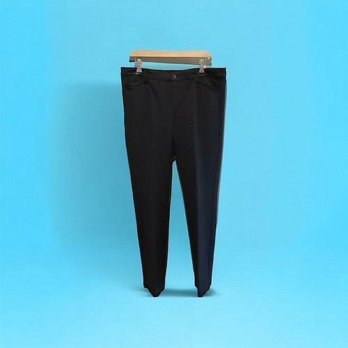 Elevate your wardrobe with these stylish, slim-fit NYDJ pants. Crafted from a comfortable viscose blend knit fabric in a chic charcoal gray color, these dress pants feature faux leather trim and a flat front for a classic and sophisticated look. The pants come in a size 14 with a straight leg style, perfect for any occasion whether it's a party, business meeting, or casual outing. The pants also come with a stretch feature to ensure a flattering fit, making them a must-have addition to your closet.