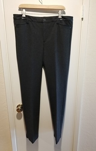 NYDJ Pants Womens Sz 14 Charcoal Gray Knit Faux Leather Trim Slimming Lift Tuck. Pants are in excellent condition from a smoke free home. See pics for measurements and condition.
