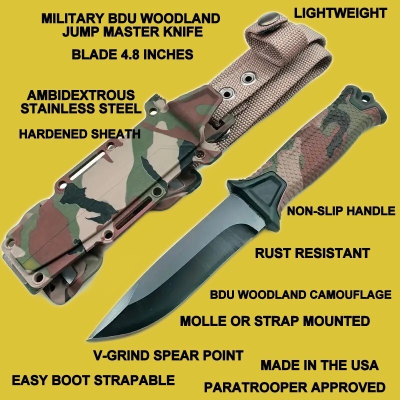 MILITARY OCP SCORPION CAMOUFLAGE WOODLAND KNIFE FIXED BLADE 4.8 INCHES