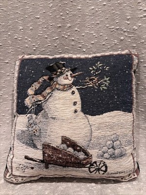 Sandy Gore Evans Snowman Tapestry Throw Pillow Square 17”x16”
