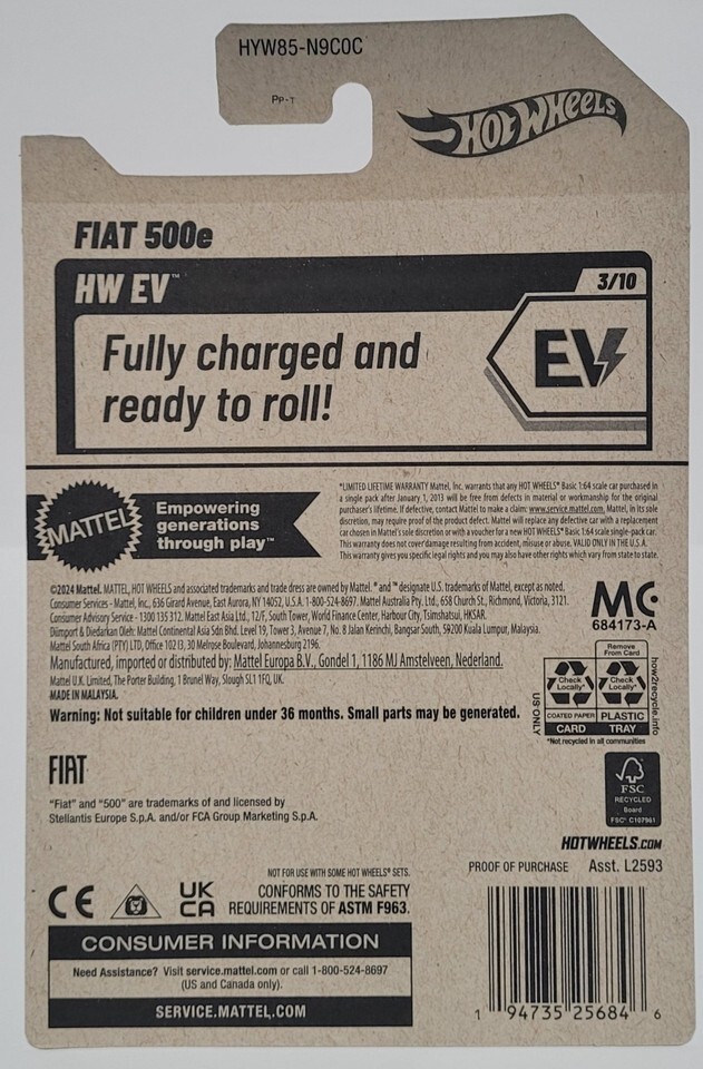 2025 Hot Wheels Fiat 500e 33/250 HW EV Series 3/10 1:64 Diecast