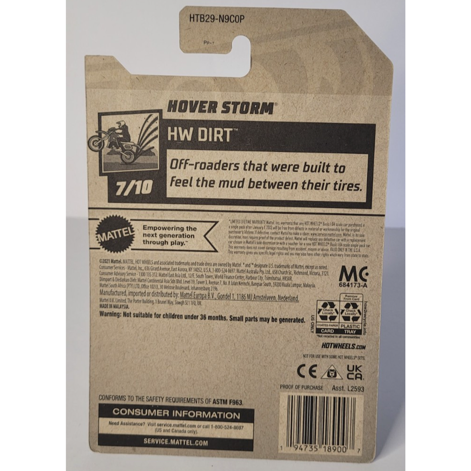 Experience the thrill of the race with the 2024 Hot Wheels Hover Storm in a striking blue hue, part of the HW Dirt Series. This 1:64 scale diecast model is a true reflection of the iconic design and craftsmanship that Hot Wheels is known for. It's an excellent addition to any collection, appealing to both boys and girls of various age groups, from 3 years and up. Crafted with precision, the Hover Storm model comes in an unopened box, ensuring it remains pristine for collectors or ready for action for avid players. Add this piece to your Hot Wheels Dirt Series collection and enjoy the blend of aesthetic appeal and playability.