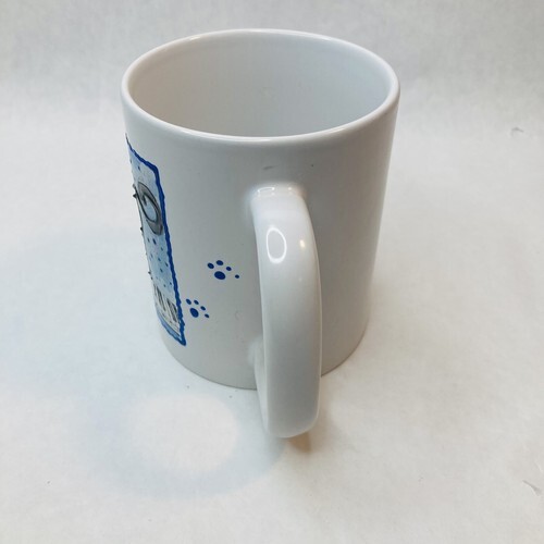 This is a unique coffee mug for any cat lover! It is a white ceramic mug with a whimsical handpainted design of a black cat on piano keys. Along the edge is painted ?Kato?s Cats.