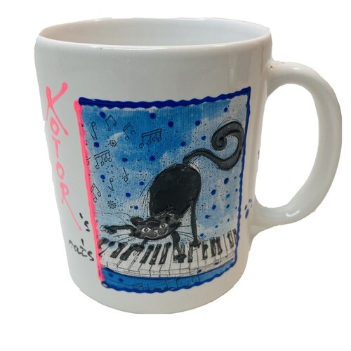 Kotor’s Cats Fukushima Japan Whimsical Handpainted Coffee Mug Black Cat Piano