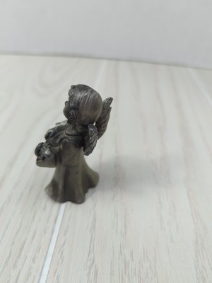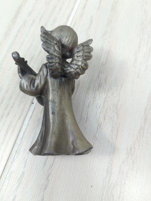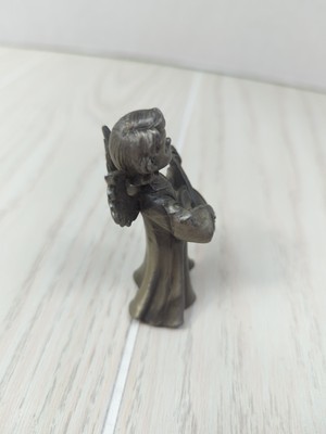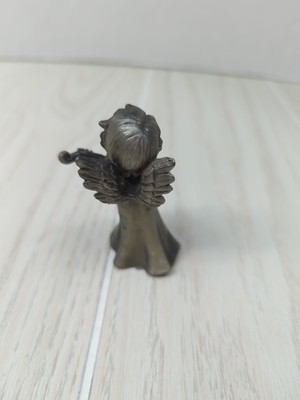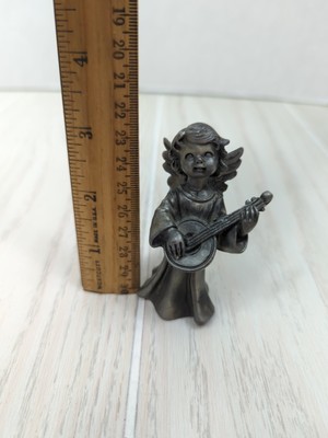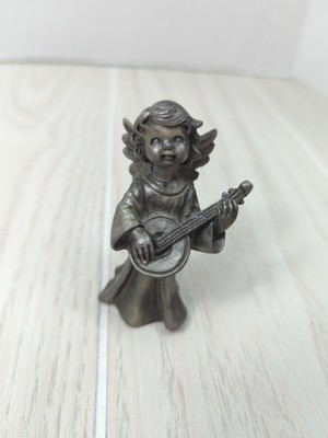 Small Pewter angel figure figurine playing banjo or similar string instrument