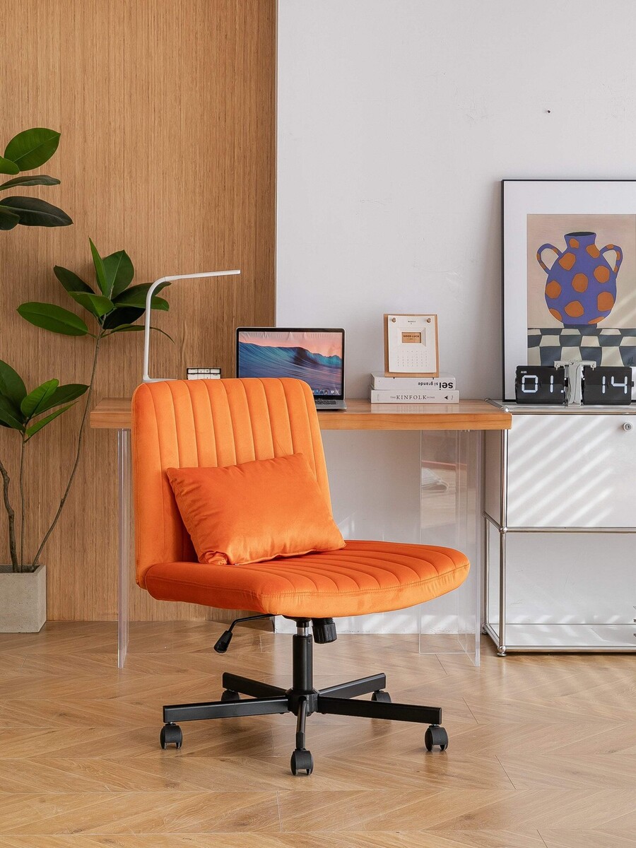 Orange Velvet Criss Cross Armless Office Chair With Wheels