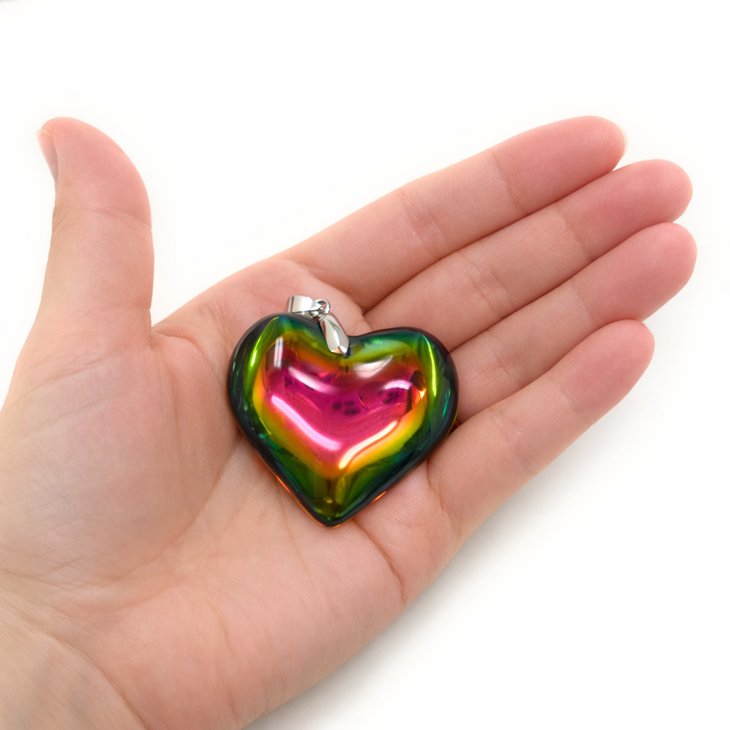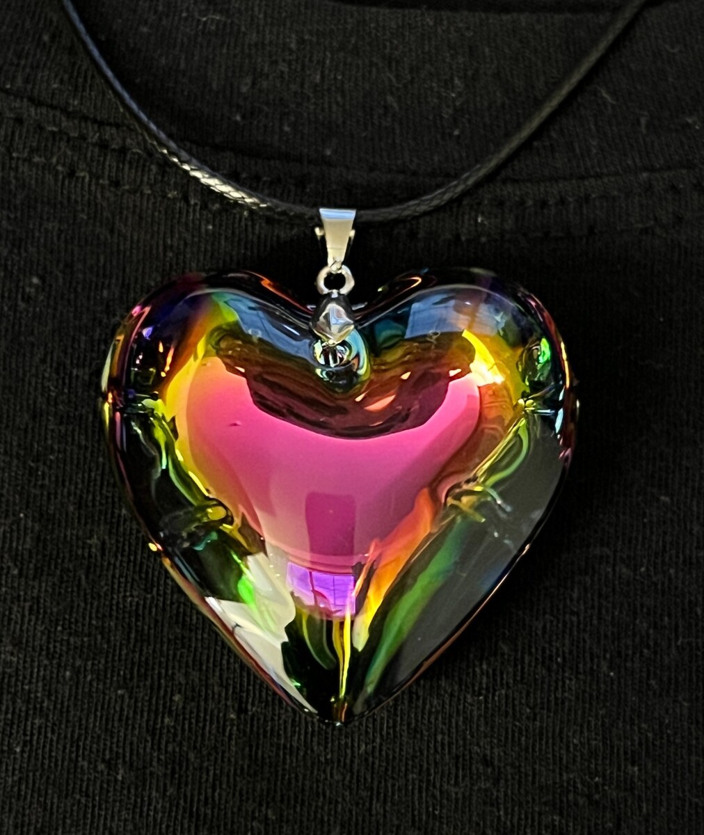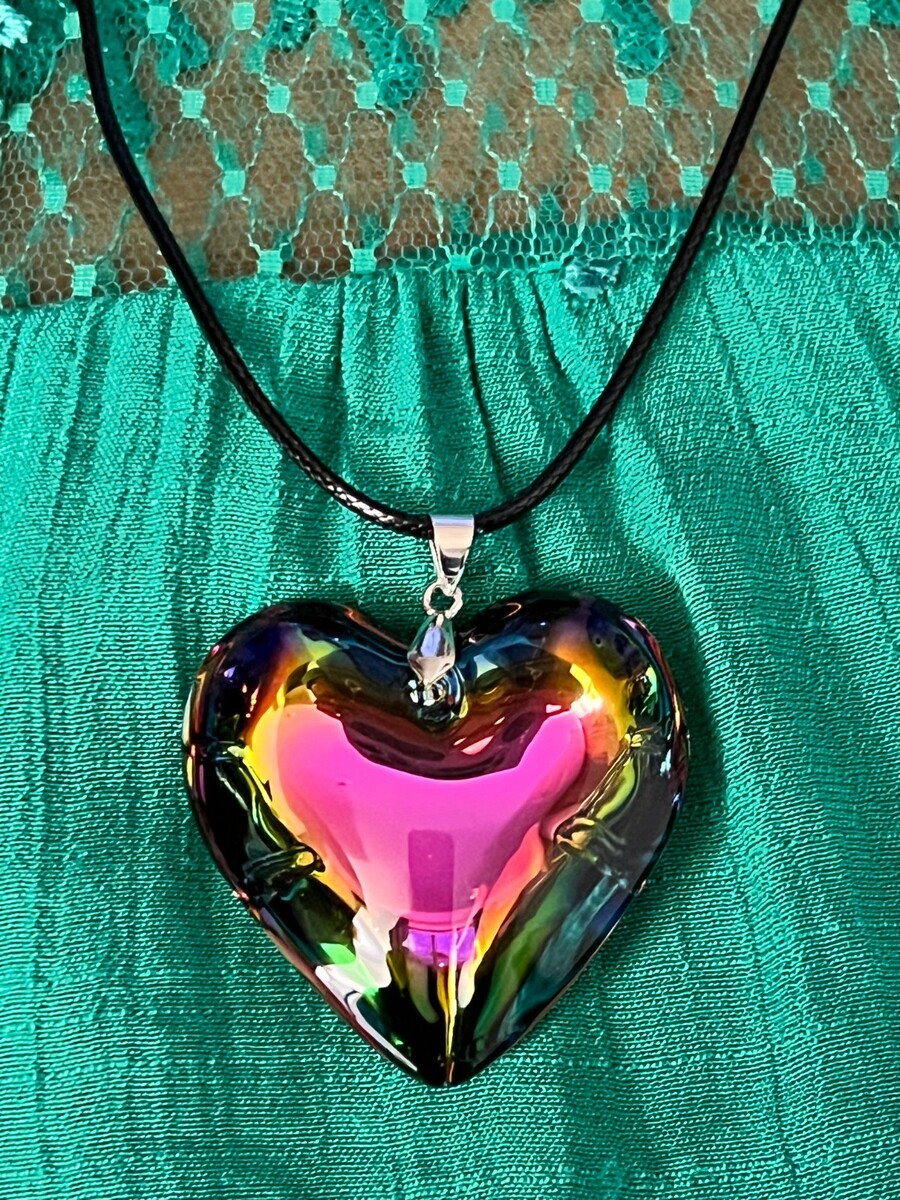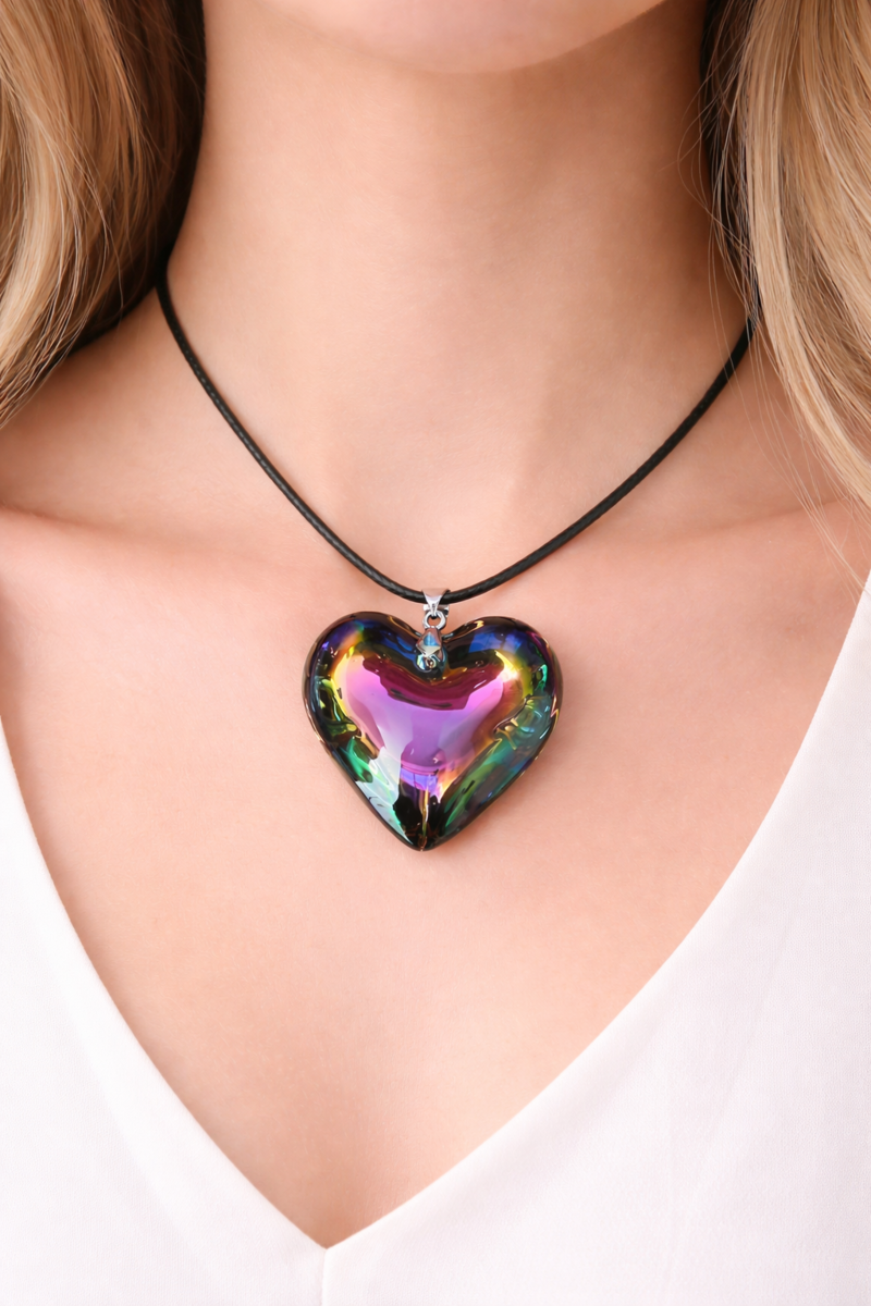 Multicolor Heart Necklace Puffy Heart Pendant Glass Charm Heart Choker Gift