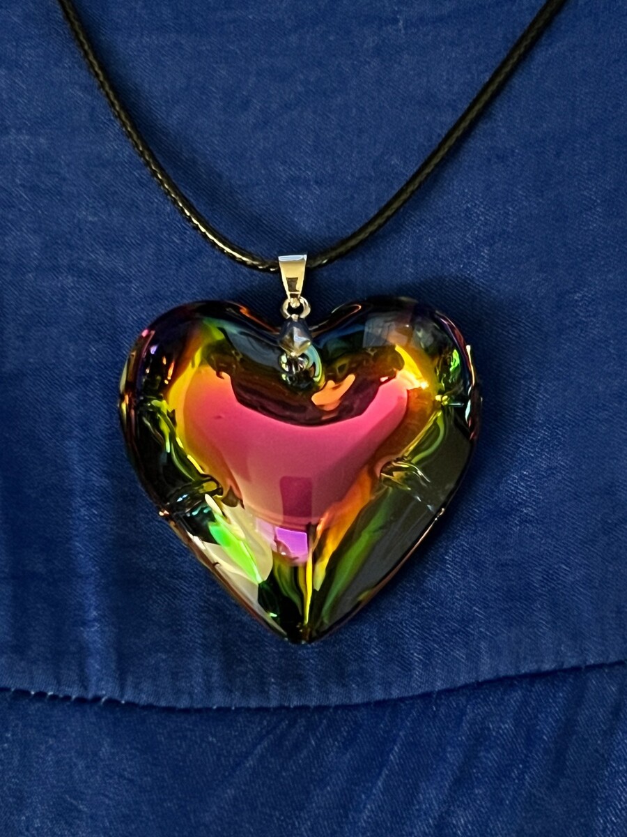 Embrace the charm of simplicity and elegance with the Multicolor Heart Necklace from AvellimGifts. The pendant showcases a captivating puffy heart design, crafted from smooth glass with a stainless steel base, featuring a silver hue that complements its crystalline appearance. Suspended on an 18-inch cord, this heart-shaped charm exudes a sense of tranquility and love, making it an ideal gift for Valentine's Day or any occasion that calls for a touch of affection.With no metal purity to consider, this necklace strikes a balance between understated charm and poignant sentiment. The white/colorless glass main stone and additional glass secondary stone enhance the pendant's allure, while the lack of a brand heralds its unique, unbranded character. Whether it's a personal indulgence or a thoughtful present, this necklace is a subtle yet significant token of love.