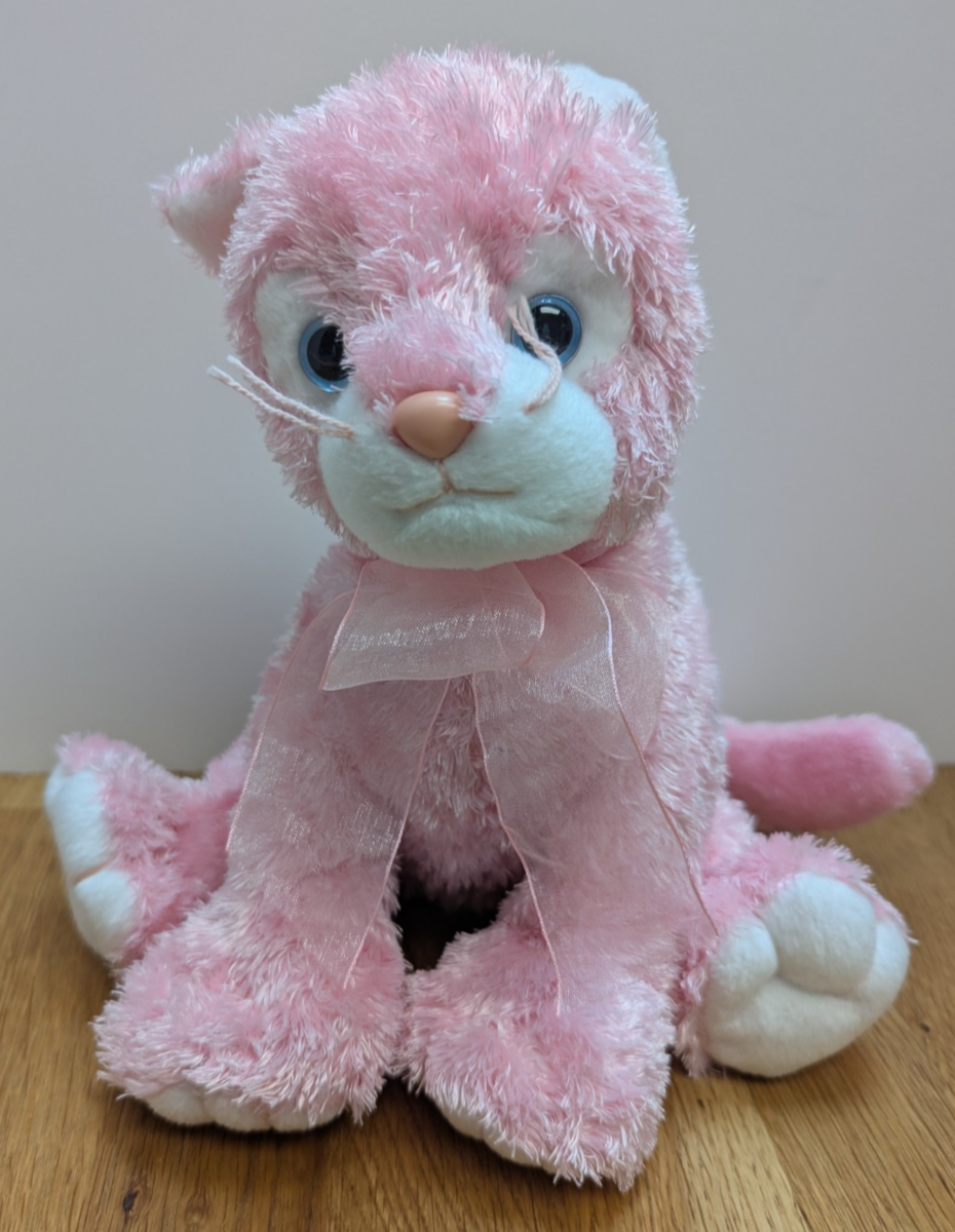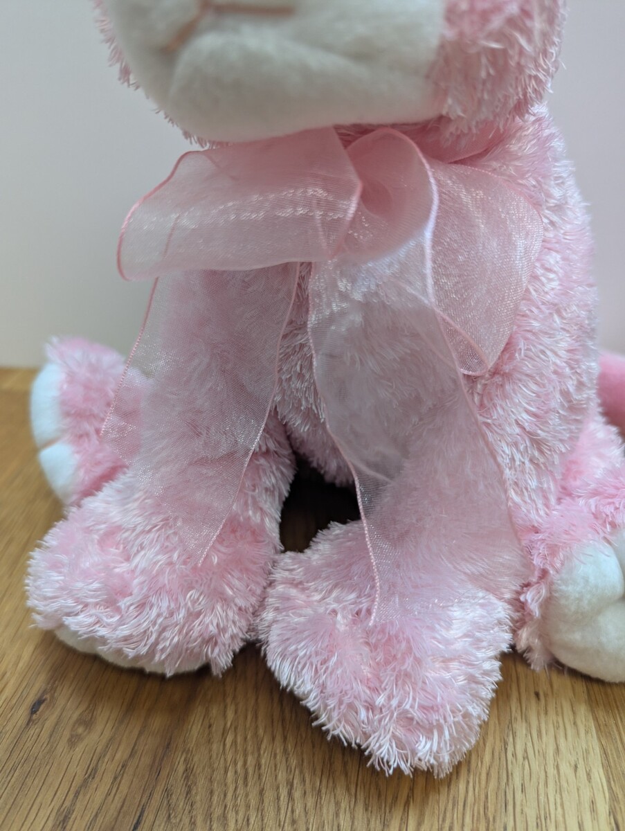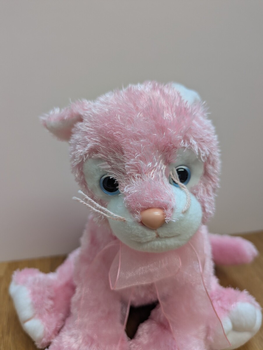 Ty Beanie Buddy Carnation Pink White Cat blue eyes ribbon bow 2004 used