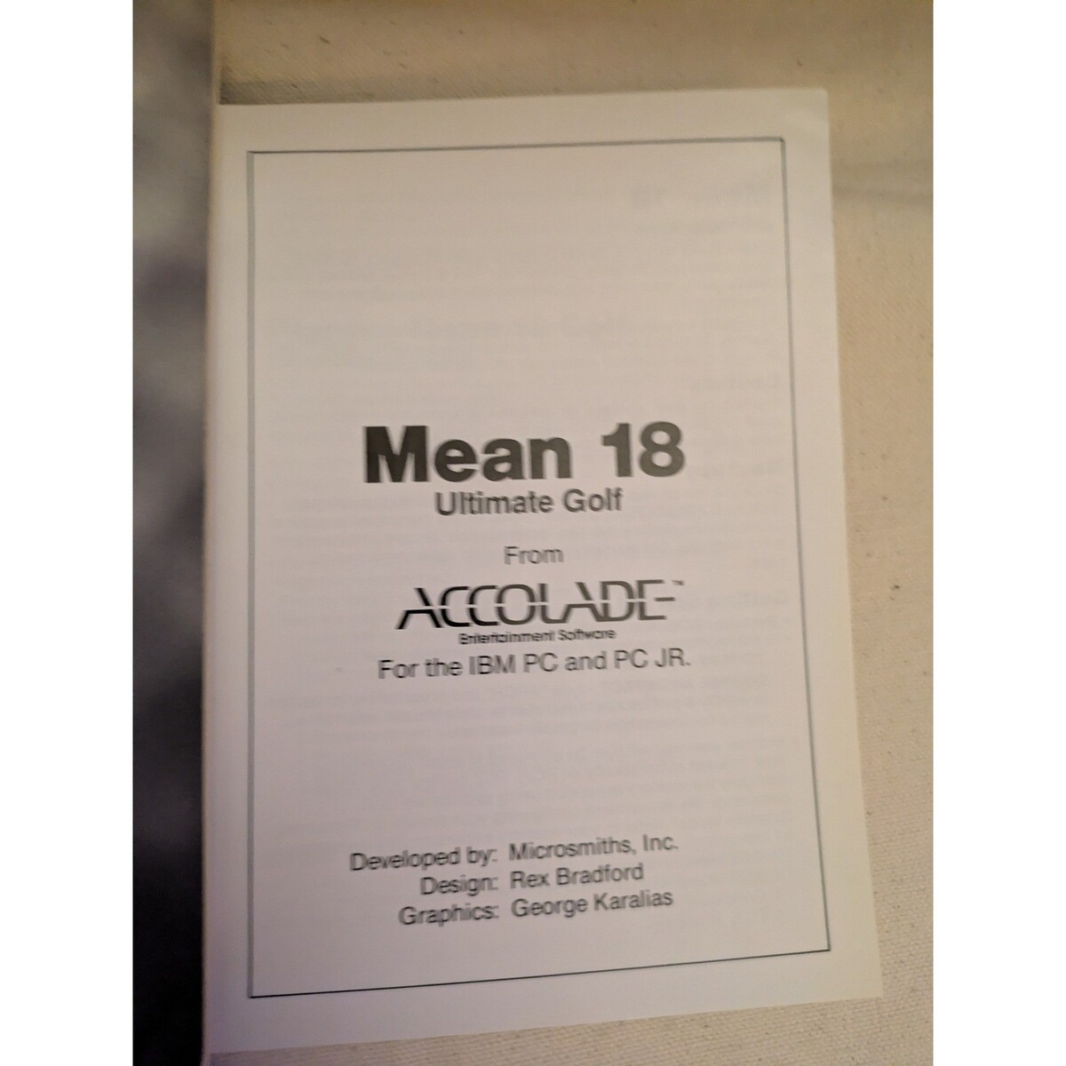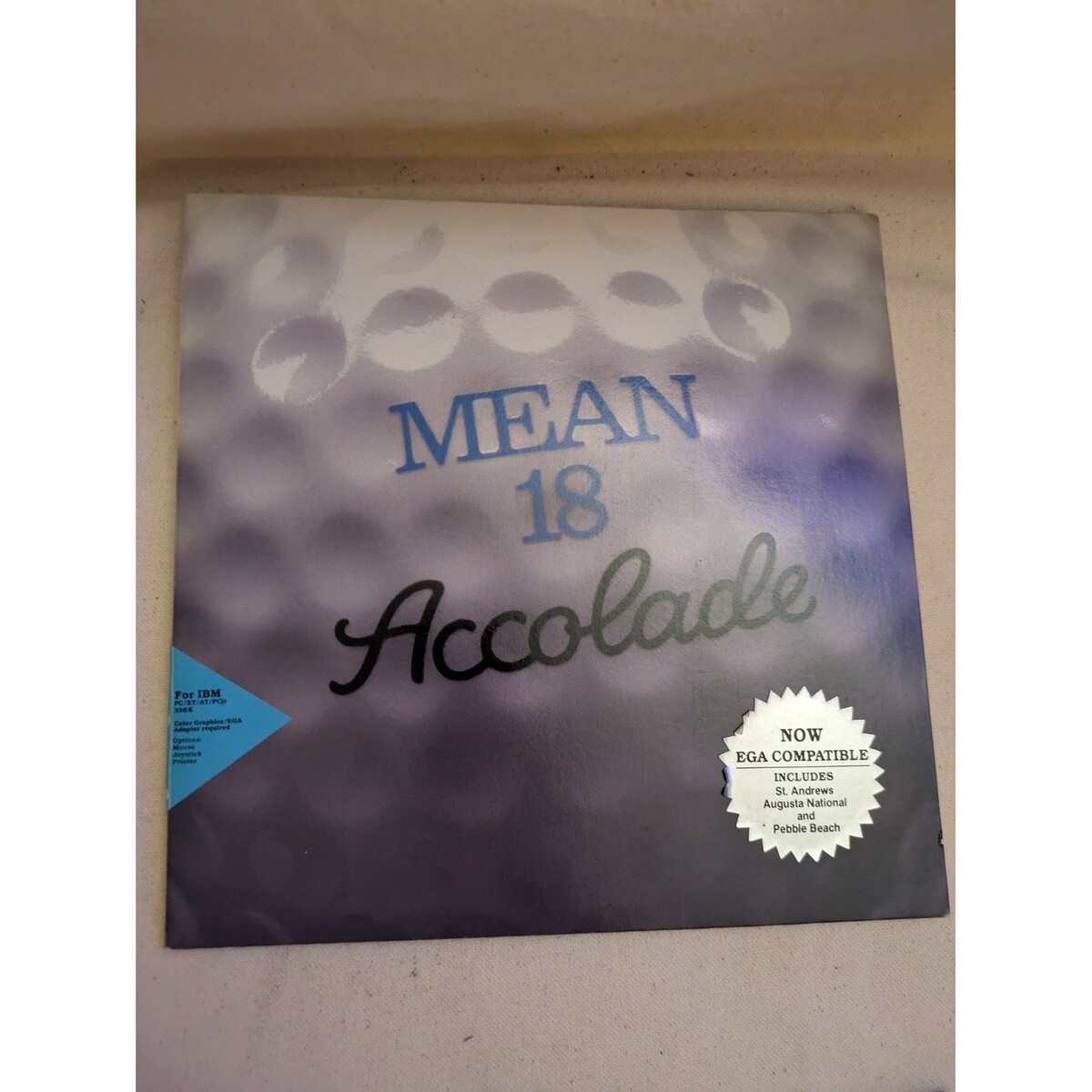 Parole chiave: Mean 18, Accolade, PC IBM, gioco per computer vintage, simulazione di golf, giochi retro, compatibile EGA, Augusta National, Pebble Beach, St Andrews, software per computer, giochi per PC, gioco classico, gioco sports